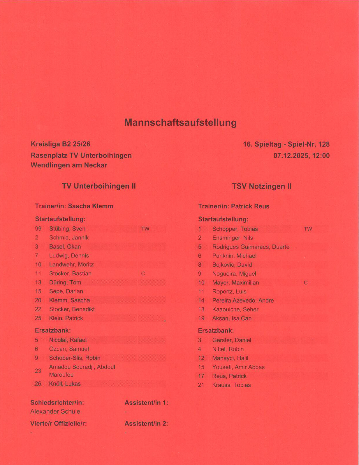 Schiedsrichter: Alexander Schüle