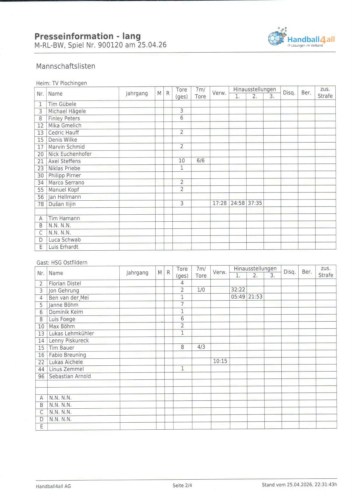 Schiedsrichter: Dirk Olbert / Tim Seils