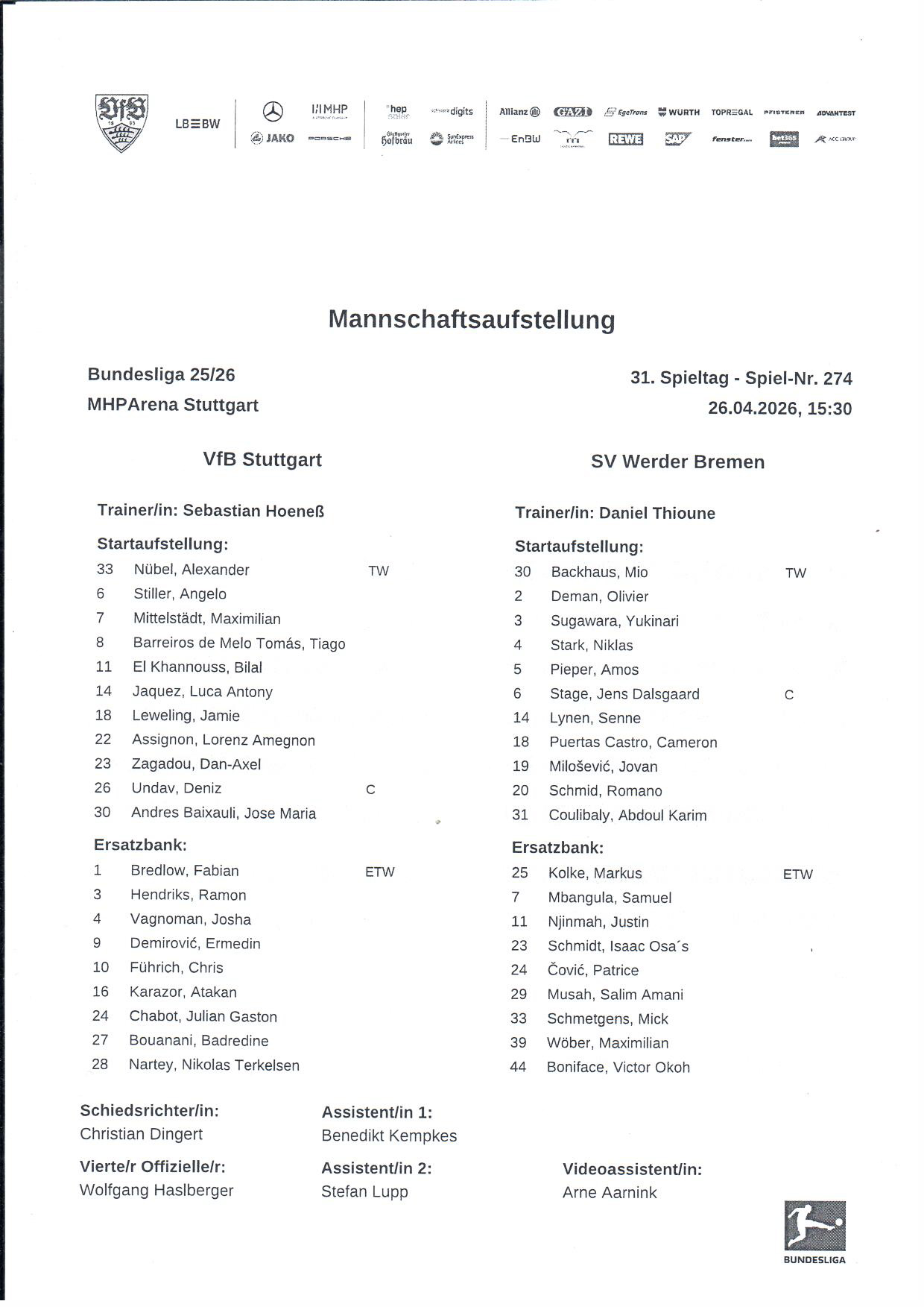 Sonntag 26.04.2026 15.30 Uhr